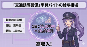 警備の単発バイトは、1日だけの勤務で12,000〜18,000円という高い日給を当日または翌日に受け取れる、即金性と高収入を両立した働き方です。未経験でも研修を経れば参加でき、副業・Wワーク・シニアの再就職など多様な目的で活用できます。信頼できる会社を選ぶためのチェックポイントは、公安委員会認定の有無・日払い条件の確認・研修中の給与支給の有無という3点です。警備の単発バイトは「今日だけ稼ぎたい」「週末の1日だけ高い日給を得たい」という現代のニーズに最も応えやすいバイトのひとつであり、選ぶ種別や時間帯によってさらに収入を最大化できる余地があります。